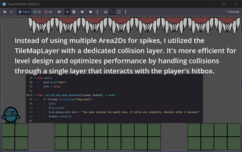 - Optimized TileMap Collisions: Efficiently handling hazards through dedicated layers.